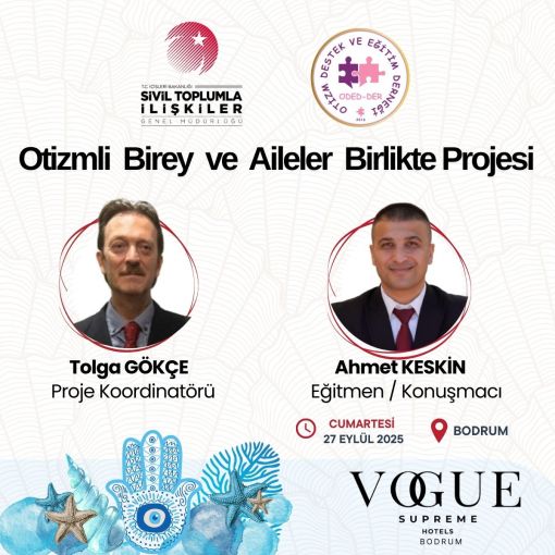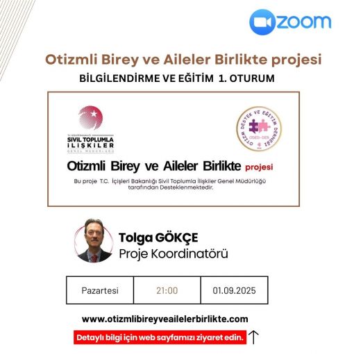 📌 *Online Bilgilendirme Eğitimi* 01.09.2025 tarihinde saat *21:00 - 23:00* arasında, proje koordinatörümüz *Tolga Gökçe* tarafından bilgilendirme yapılmış, eğitim ise *Eğitmen Ahmet Keskin* tarafından gerçekleştirilmiştir. Eğitim kapsamında ailelerimize; 📌Otizm dostu tatil uygulamaları, 📌Seyahat ve erişilebilirlik süreçlerinde dikkat edilmesi gereken hususlar*, 📌Kriz dönemlerinde dikkat edilmesi gereken yaklaşımlar*, 📌Personellerle doğru iletişim yöntemleri*, 📌Temel bilgilendirme içerikleri* aktarılmıştır. |
